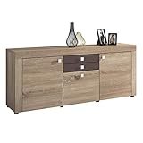 - Módulo central de aparador con 2 puertas, gran capacidad de almacenamiento. Medidas del Módulo: 102cm. de Ancho, 75cm. de Alto, 35cm. de Profundidad. Color roble y negro con veteado de madera de tacto poroso de alta calidad.