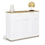 • Aspecto simple: el aparador salón tiene un diseño moderno con una combinación de aparador blanco y patas de madera maciza de color natural, adecuada para cualquier estilo de habitación. El aparador salón está equipado con 3 puertas sin tiradores y con las dimensiones 107x40x80cm ofrece mucho espacio de almacenamiento para mantener tu hogar ordenado.
