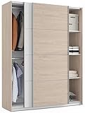 - Armario multiusos con 2 Puertas Correderas, estante + barra para colgar perchas, acabado en melamina de excelente calidad de color andersen - puccini