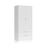 Mobelcenter - Armario 2 Puertas y 2 cajones - Armario 180 (Alto) x 81,5 (Ancho) x 52 (Fondo) cm - Armario Blanco – (1229)
