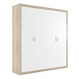 - 🍂CARACTERÍSTICAS: Armario de cuatro puertas | Dividido en dos partes con una barra y un estante cada una | Barras de colgar de aluminio | Bisagras metálicas para las puertas | Materiales: Tablero de partículas melaminizado | Color: Cambrian / Blanco