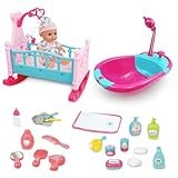 - 【Muy Buen Regalo】:Los niños estarán encantados de recibir y jugar con esta adorable muñeca de bebé con bañera, regalo perfecto para el cumpleaños, vacaciones, Navidad. Nuestro set de juego simulado para niños pequeños, niñas, niños y preescolares es muy divertido con una bañera y una cuna.
