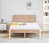 - Cama Metálica con cabecero de Diseño Elegante y Atractivo: Base de Cama con cabecero y piecero color madera natural: Construida con un marco de metal completo y listones de metal resistentes. La base de listones proporciona una base adecuada para cualquier tipo de colchón.