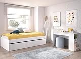 - Pack para habitación de cama con arrastre y escritorio con cajón y estantes integrados.
