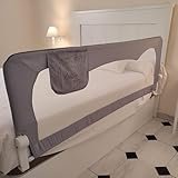 Mundibebé Barrera Seguridad Niños Cama 180 x 66 cm con Bolsillo - Seguridad y Comodidad, Alta y Robusta - Barrera Cama Niños Abatible - Barandilla Cama Niño Modelo Osito y Luna Gris