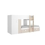 DEKIT GRUPO RIMOBEL MOVE - Cama tren para dormitorio con doble montaje y con dos camas - Blanco / Natural - 191x150x255 cm