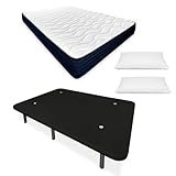 - El pack incluye Base Tapizada Extra Reforzada con juego de 6 patas cilíndricas metálicas roscadas + colchón viscoelástico Sleep Pro Reversible, con cara de invierno y verano + 2 almohadas de fibra de 70 cm. Importante: Las almohadas van embaladas y envasadas junto con el colchón, una vez desembale el colchón, podrá ver las almohadas