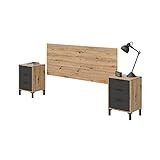 - Mueble fácil y rápido de limpiar con un paño húmedo; requiere montaje (incluye instrucciones y herrajes); no incluye complementos decorativos, sólo incluye el cabezal y las mesitas