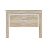 - Amplio Cabezal para cama de matrimonio compuesto por plafones de 19 cm con acabado en madera texturizada para camas de 135 a 150 cm de ancho; sus dimensiones son 160 cm (ancho) x 60 cm (alto) x 2,5 cm (fondo).