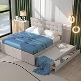 - 【Material de Lino Duradero y Elegante】La cama de almacenamiento está tapizada con un material de lino de alta calidad en color beige, que no solo es elegante sino también resistente al desgaste diario. Este tejido transpirable asegura una larga vida útil de la cama, manteniendo su apariencia fresca y moderna con el tiempo.