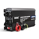 - 【1500W Inversor Onda Pura】Potente potencia pico de 3000W, salida continua de 1500W de onda sinusoidal pura. Puede convertir 12V DC de entrada a 220V/230V de onda sinusoidal pura igual que la electricidad doméstica. Puede producir una fuente de alimentación más limpia, suave y fiable y proporcionar una mayor capacidad de conducción, especialmente adecuado para dispositivos electrónicos sensibles como ordenadores, teléfonos móviles, televisores y otros electrodomésticos.