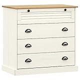 - 【Madera maciza de pino:】 La madera maciza de pino es un bonito material natural. La madera de pino tiene vetas rectas, y los nudos dan al material su distintivo aspecto rústico. Hecha de madera maciza de pino, la cajonera es duradera y resistente.