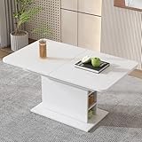 soges Mesa de Comedor Extensible con Estante, Mesa de Centro Rectangular, Isla de Cocina para Sala, Comedor, Blanco 110/130 x 70 x 75 cm