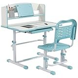 ZONEKIZ Juego de Escritorio y Silla para Niños de 6-12 Años Pupitre Infantil Altura Ajustable con 1 Cajón 1 Estante para Libros y Ángulo de Mesa Ajustable 80x54,5x82-104 cm Azul y Blanco