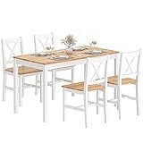 - INCLUYE 4 SILLAS - La agradable altura de asiento de 44 cm y el óptimo respaldo de 46 cm de altura de las sillas de comedor permiten sentarse cómodamente. Los bordes redondeados aportan un toque estético a los muebles del comedor y ofrecen seguridad adicional, especialmente para los niños.