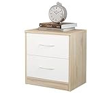 CASARIA® Set 2 Mesitas de Noche con Cajón 50x40x35cm para Cama Mueble Dormitorio Mesilla de Noche Mesa Auxiliar Compartimento Abierto Asa Cromada