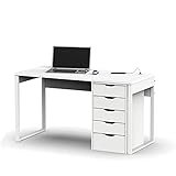 - Increíble conjunto para oficina o despacho compuesto por una mesa de escritorio acabado en color blanco atlas y una cajonera blanca, los cuales te permitirán añadir una buena superficie de trabajo y espacio de almacenaje en la estancia que lo necesites, La cajonera dispone de cinco cajones con guías metálicas, en los que podrás guardar el material de oficina (informes, bolis, lápices...). ¡Con esta mesa de escritorio con cajonera completarás tu despacho o lugar de trabajo!