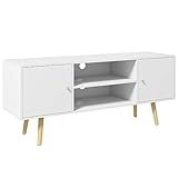 HOMCOM Mueble de TV Moderno Mueble para Televisores de 50 Pulgadas Mesa de TV para Salón con 2 Puertas 2 Estantes Abiertos y Patas de Madera 110x39x50 cm Blanco