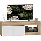 - ESTILO MODERNO: Combinando el color natural de la madera con el blanco, este gabinete de TV encajará fácilmente con la decoración y otros muebles de tu hogar. Apto para colocar un televisor de hasta 65 pulgadas encima