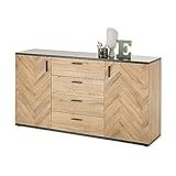 - Mucho espacio de almacenamiento: el aparador impresiona por su amplio espacio de almacenamiento con dos puertas de armario y cuatro cajones. Esto te permite tener suficiente espacio para guardar tus artículos de forma ordenada.