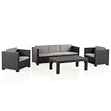 SP Berner - Set de Muebles de Jardín y Terraza Diva Tropea Color Grafito - Sofá 3 Plazas, 2 Sillones y Mesa de Centro - Fabricado en España con Plástico Reciclado