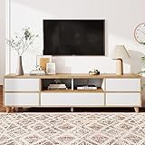 - ESTILO MODERNO: El estilo moderno de este gabinete de TV, con su bonita combinación en color blanco y madera natural, lo hace perfecto para encajar con diferentes estilos y decoraciones. La encimera permite colocar un televisor de hasta 50"