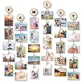 - Te ofrecemos 4 palabras de madera temáticas: FAMILY FRIEND LOVE y BABY, que se pueden combinar fácilmente y montar en la parte superior del marco fotos multiple. Por lo tanto, puede definir el tema de su marco fotos pinzas gracias a las fotos que cuelga, pero también gracias a las letras