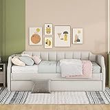 - Con esta cama de día transformarás tu salón en una habitación de invitados en un instante. Está construido sobre un marco de madera maciza y tapizado con poliéster en un tono beige para que coincida con su paleta de colores actual. Los colchones para el diván y la cama plegable no están incluidos en el envío. Recomendamos para ambos colchones el tamaño 15-20 cm.