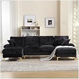 - Moderno sofá de chenilla grande en forma de U, sofá doble extra ancho chaise lounge