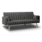 - ASPECTO MODERNO Y CONTEMPORÁNEO: El estilo de este moderno sofá cama no queda relegado a un segundo plano gracias a sus amplios mechones, sus patas negras en ángulo y su tapizado gris oscuro.
