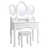 - [ Múltiples Usos ]: Este tocador con luz LED tiene un diseño sencillo y elegante que puede encajar fácilmente en la decoración de su hogar. Puede utilizarlo como tocador o escritorio en su hogar, y también es una buena opción para regalar.