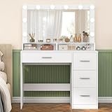 - [Estilo moderno]: el tocador FIONESO es el regalo ideal para las mujeres de su vida. Diseño moderno y moderno e iluminación LED cristalina, este tocador crea un ambiente similar a un spa que las hace sentir verdaderamente enamoradas. Ya sea para tu madre, esposa o hija, este versátil tocador seguramente se convertirá en una parte preciada de su régimen de belleza.