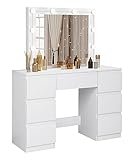- GRAN ESPACIO DE ALMACENAMIENTO: 7 cajones con guías metálicas le ofrecen mucho espacio para guardar productos de cuidado de la piel, cosméticos y joyas por categorías y en orden. El amplio tablero le ofrece mucho espacio para el maquillaje