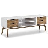 - Ideal para cualquier rincón del hogar, dando accesibilidad a objetos y libros de uso diario y decoración. Como describe la tendencia minimalista este mueble tv es decorativo y funcional, aporta esencialidad a nuestra estancia. Estructura principal en color Blanco y tapa en color Roble; puertas con apertura mediante copete superior.