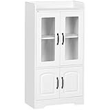 HOMCOM Aparador Auxiliar con 2 Puertas de Vidrio Armario de Salón Multiusos con 2 Estantes Interiores Ajustables Estilo Retro para Baño Cocina Comedor 66x31,8x86,8 cm Nogal